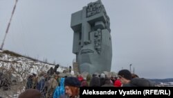 "Маска Скорби" – дань памяти жертвам репрессий, установленная 20 лет назад скульптором Эрнстом Неизвестным, каждый день напоминает о трагическом прошлом региона. В воскресенье около 100 человек пришли почтить память погибших. Минута молчания, короткая лития, прочтение 20 имен погибших, добавленных в мартиролог. Люди, одетые в теплые пуховики и зимние ботинки, ежатся от мороза и пронизывающего ветра.