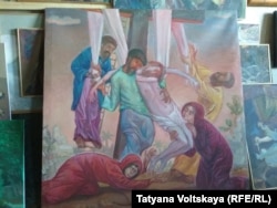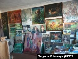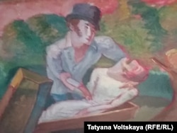 Потолок мастерской Виктора Тихомирова украшает картина, на которой Онегин, потрясенный содеянным, вынимает Ленского из гроба. Художник признается, что у него давно возникли некоторые претензии к роману "Евгений Онегин", но толчком к написанию "Телегина" стали лекции литературоведа Валентина Непомнящего.