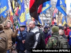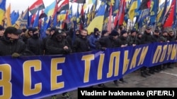 Около десяти тысяч праворадикалов участвуют в "Марше национального достоинства" в украинской столице. Несколько колон демонстрантов под лозунгом "Все только начинается" идут от метро "Крещатик" и от Майдана Независимости к Верховной Раде, где должен пройти митинг активистов "Правого сектора" (запрещенного в России), "Свободы" и "Национального корпуса".
