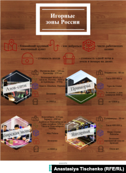 В 2009 году было объявлено о строительстве игорных зон в России. Изначально их было четыре: "Азов-сити", "Приморье", "Сибирская монета", "Янтарная". В июле 2014 года по инициативе президента Владимира Путина решили построить пятую – в Крыму. Планировали создать российские Лас-Вегасы: сеть казино, многочисленные рестораны и отели, парки аттракционов, облагороженная территория. Игорный бизнес должен был предоставить новые рабочие места, развивать туристическую и транспортную инфраструктуру. Но на сегодняшний день на отдаленных от больших городов территориях, измеряющихся сотнями гектаров, стоят лишь одинокие здания казино с отелем и парой ресторанов.