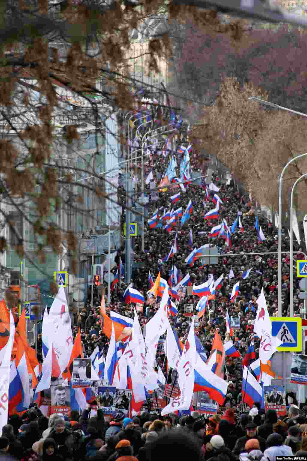 В Москве прошел Марш памяти Бориса Немцова, убитого в центре столицы два года назад. В акции, по данным волонтеров независимой группы "Белый счетчик", участвовали около 15 тысяч человек, некоторые из них после завершения официальной части шествия направились к месту убийства Немцова на Большом Москворецком мосту. Акции памяти оппозиционного политика состоялись и в других городах России.