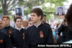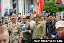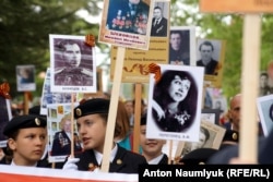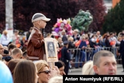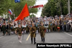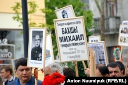 "Бессмертный полк" змеей полз по Екатерининской до здания Госсовета и дальше мимо областной прокуратуры. Шествие казалось бесконечным, через каждую минуту-две участники кричали: "Ура!" На табличках десятки тысяч фотографий. Взгляд выхватывает одну: "Генерал из крымских татар Бахши Михаил". Внизу приписка: "Репрессирован в 1937 году".