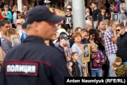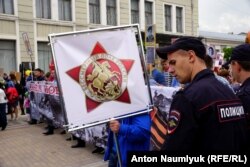 ​Первая официальная колонна шествия уже пошла по Кирова, завернула на Екатерининскую, когда часть участников только выстраивалась по проспекту. "Эй, товарищи, подвиньтесь, не видно же ничего!" – закричал мужчина с кавказским акцентом полицейским в штатском, которые стояли хмурые перед толпой, часто переговаривались по рации и закрывали обзор на колонну "Бессмертного полка" с детьми в первых рядах. "Это провокатор, – весело сообщила женщина подружкам. – Сейчас он докричится, увидишь, что с ним сделают", – добавила она, уже обращаясь к сыну.