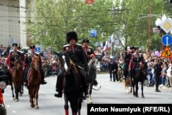 По улице Кирова гарцуют несколько казаков, с шашками, молодцевато. Им свистят уже все, снова скандируют: "Россия!" Кони шарахаются, и после на дороге остаются "яблоки", которые размазывает техника. Дети смеются и показательно зажимают носы. "Опозорились на весь город кони", – смеется мальчишка у самой решетки ограждения.