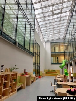 Потом нас стали водить по детскому саду и рассказывать. Там примерно такая же история, как со школой. Там кругом передовой иностранный опыт. Татьяна сама ездила в Италию, Германию, Чехию, Эстонию. Показывает комнаты, описывает методики. Ну я не буду грузить вас этими названиями. Там море всего. Там классы для живописи.