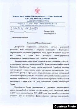 – Я задал вопрос в целом об Архиве РАН, так как от московского зависела судьба и санкт-петербургского филиала. Я писал о том, что возникла такая сложная ситуация, которая грозит и сохранности документов. Кроме того, сотрудники на тот момент уже месяц не получали зарплату. Я спрашивал, что предпринимается в связи с этим?