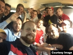 Селфи в автозаке Дмитрия Демушкина, националиста, недавно вышедшего из заключения и теперь исполняющего обязанности главы администрации сельского поселения Барвихинское Одинцовского района Московской области.