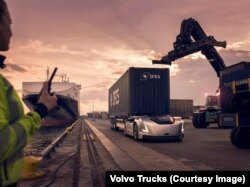 3. Шведская компания Volvo выпустила первый в мире беспилотный грузовик без кабины — потому что зачем беспилотному автомобилю кабина? Выглядит он как дорогой спортивный болид с платформой. Грузовик под названием Vera уже прошёл испытания и очень скоро начнёт перевозить контейнеры в порту Гётеборга.