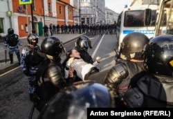 Как сегодня задерживали протестующих в Москве, фото от корреспондента Радио Свобода