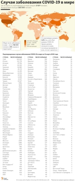 За сутки в стране зафиксировали 500 новых случаев заражения коронавирусом, в том числе в Москве 387 (всего 1613). Согласно официальной статистике, число умерших достигло 17. За сутки умерли восемь человек - пять в Москве, один в Санкт-Петербурге, один во Владимирской области, один в Пензенской области.