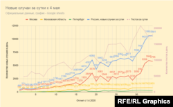 Россия - на втором после США месте по числу новых подтвержденных случаев за сутки, превысив уровень в 10 тысяч случаев в день. Это больше, чем было на пиках у Испании и Италии.