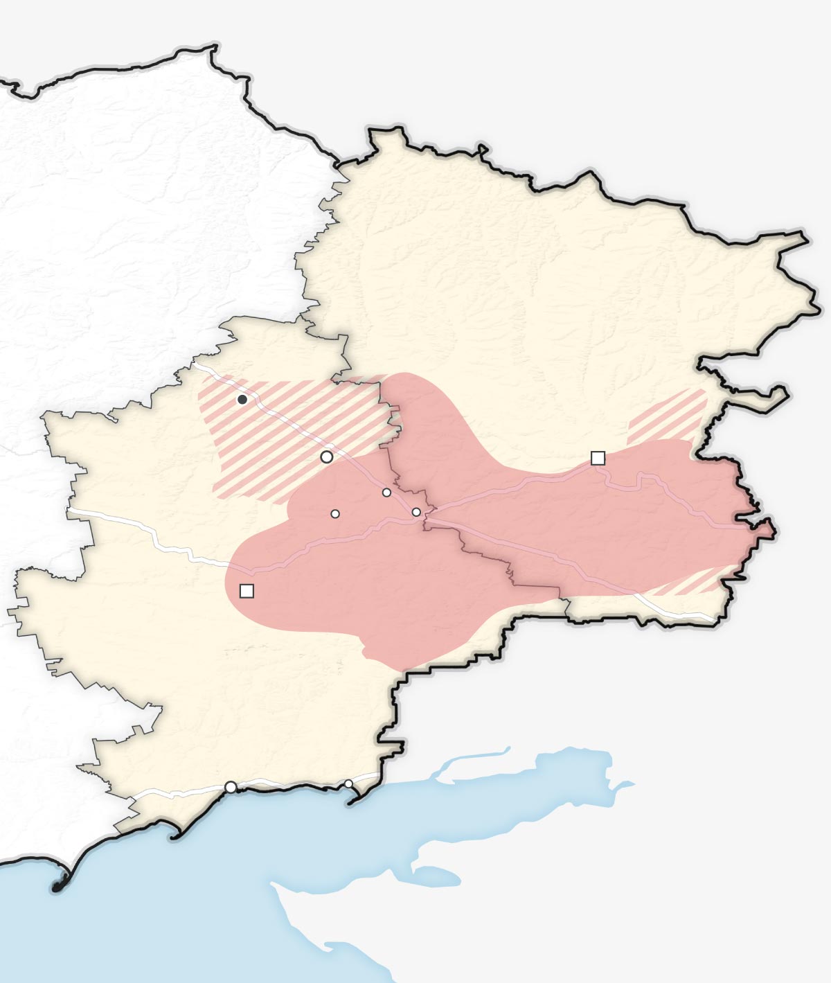 - Территория, контролируемая поддерживаемыми Россией сепаратистами до 5 июля 2014 года.