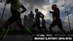 В воскресенье в Москве и ряде других городов России, несмотря на ограничения, введённые из-за пандемии коронавируса, власти организовали массовый полумарафон для любителей бега.