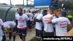 Футболисты белорусского клуба "Крумкачы" ("Вороны") вышли на матч против "Динамо" в футболках с надписью "Мы против насилия", передает Белорусская служба Радио Свобода.