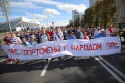 В Минске на традиционную воскресную акцию протеста, которую оппозиция назвала "Марш героев", вышли, по разным оценкам, от 100 до 150 тысяч человек.
