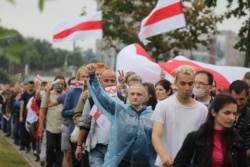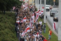 Участники "Марша новой Беларуси" заняли почти всю площадь Независимости в центре Минска, а также прилегающие улицы. Многие участники говорят, что впервые принимают участие в политической акции протеста.