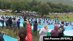 Более трёх тысяч жителей Башкирии вышли на акцию "Куштау, живи!", протестуя против вырубки леса на горе Куштау. Сообщается, что акция, которая прошла на месте предполагаемой вырубки, прошла без задержаний.