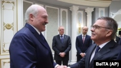 Президент Международной федерации хоккея (ИИХФ) Рене Фазель приехал в понедельник в Минск, чтобы обсудить с Александром Лукашенко чемпионат мира по хоккею, который должен пройти в этом году в Минске и Риге. Белорусская оппозиция и латвийская сторона, а также ряд других стран – участников чемпионата неоднократно высказывались против проведения в Беларуси этого мероприятия из-за жестокого подавления гражданских протестов.