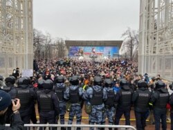 Корреспонденты Радио Свобода передают, что Страстной бульвар зачищает шеренга силовиков, идущая в сторону Петровки. На Тверском бульваре происходят точечные задержания. Трубная площадь оцеплена. Идущих в ее сторону по Петровскому бульвару протестующие заблокированы шеренгой ОМОНа.