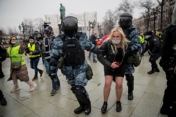 В Москве стычки между участниками акции протеста и сотрудниками правоохранительных органов продолжаются.