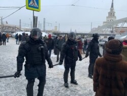 В Петербурге сотрудники ОМОН продолжают задерживать протестующих на акции на Пионерской площади.