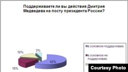 – С одной стороны, если посмотреть на результаты опроса относительно благоприятного или неблагоприятного впечатления о Медведеве, то мы увидим, что впечатление в основном благоприятное: такое отношение разделяют 60% граждан, хотя их количество несколько снижается в последнее время. Да, собственно, и рейтинг тандема в последние месяцы тоже имеет тенденцию к падению. Но что такое "благоприятное представление"? Это не тот рейтинг, который можно сравнивать с рейтингами западных лидеров, а это феномен оценки статус-кво. И, по сути дела, отвечая на вопрос "Как вы относитесь к лидеру?", люди фактически отвечают на вопрос: согласны ли вы с сохранением статус-кво.