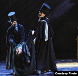 — Сейчас наша интонация немного изменится, потому что мы перейдем к другому балету, представленному труппой Мариинского театра в Москве, в рамках фестиваля «Золотая маска». Этот балет называется «Шинель», поставлен он на музыку Шостаковича хореографом, имя которого мне ничего не говорит — Ноа Д. Гелбер. Он номинирован на «Золотую маску» как хореограф, а также номинирован исполнитель роли Акакия Акакиевича, Андрей Иванов.