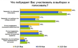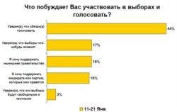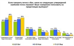 Сравнивая предполагаемые цифры явки, полученные в январе (76% - «скорее всего буду голосовать» + «совершенно точно буду голосовать») с аналогичными показателями октября (54%) и ноября (63%), можно оценить не только влияние пропаганды на общественное мнение, но и силу персонифицированного государственного патернализма в России.