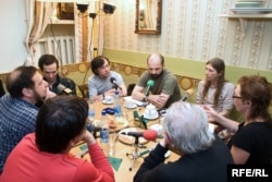 И за нашим столом – филолог Мария Ремизова, автор книги «Пудинг из промокашки. Хиппи как они есть», Игорь Чубаров, научный сотрудник Института философии, историк Илья Смирнов, медиа-художник Олег Киреев, автор «Поваренной книги медиа-активиста», социолог Борис Кагарлицкий, директор Института глобализации и социальных движений, директор Музея кино Наум Клейман и его заместитель – историк Максим Павлов.