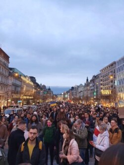 В центре Праги прошел многолюдный митинг протеста против российского вторжения в Украину