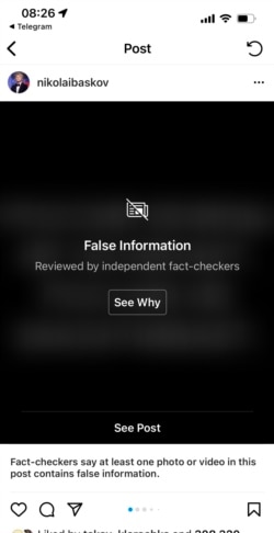 Нашумевший пост в инстаграме певца Николая Баскова расценен администрацией соцсети как ложная информация и выглядит теперь так: