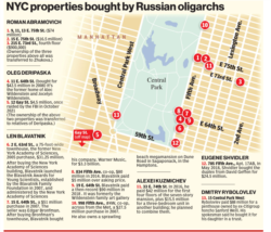 Газета New York Post опубликовала карту, на которой указана роскошная недвижимость, принадлежащая некоторым российским олигархам в Нью-Йорке.