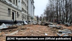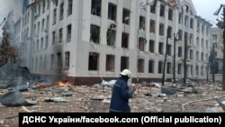 В Харькове, по поступающим сообщениям, российскому удару подверглось областное управление полиции. На видео, опубликованном в социальных сетях, можно увидеть, что горит соседнее здание экономического факультета харьковского университета.
