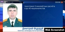 6 мая 2022 года Министерство обороны России рассказало о "новых примерах героизма и мужества российских военнослужащих" во время "специальной военной операции". В их числе был капитан Дмитрий Фурдуй, который "вместе с вверенной ему мотострелковой ротой вел бой с украинскими националистами, оккупировавшими один из населенных пунктов".