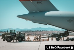 Министерство обороны США публикует в фейсбуке фотографию погрузки новой партии гаубиц М777 для Украины. В комментариях американских военных благодарит за помощь Генштаб ВСУ.