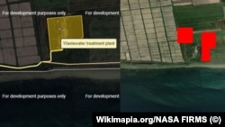 Спутниковые снимки сервиса Planet.com, сделанные 2 августа, показывают следы разрушений и пожара на водоочистной станции (на видео – сравнение со снимком 30 июля).