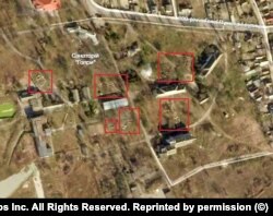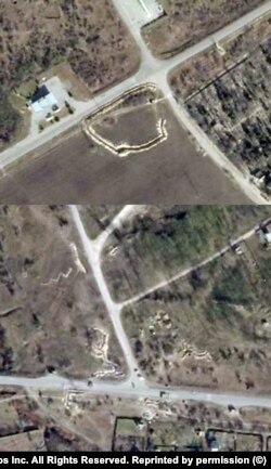 Радио Свобода изучило спутниковые снимки Голой Пристани, сделанные 23 февраля и опубликованные сервисом Planet.com. На них можно увидеть одну из возможных баз российской армии в этом населенном пункте. Это санаторий "Гопри", на территории которого вырыты многочисленные окопы и укрепления.