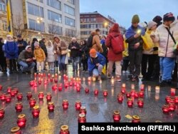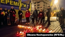 На площади Свободы участники акции зажгли сотню свечей, сообщает корреспондент Радио Свобода