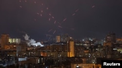 Российская армия в ночь на воскресенье подвергла Киев массированной атаке беспилотников. Повреждены несколько домов, возникли пожары, сообщил мэр города Виталий Кличко.