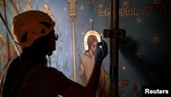 В парижском выставочном зале Mobilier National выставлены картины, спасённые пять лет назад из пожара в соборе Нотр-Дам. Они подверглись тщательной реставрации, и вскоре будут готовы вернуться в собор, когда он откроется после восстановления.